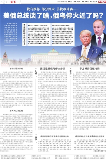●对特朗普提出的俄乌在30天内不袭击对方能源基础设施的提议,普京作出“积极回应”,并已向俄军下达相关指令。