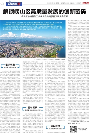 2024年,崂山区规上工业增加值增长18.3%、全市第一,高端制造业规模突破千亿元,高新技术企业总数突破1000家,数字经济核心产业增加值占GDP比重持续领跑全市……崂山区犹如一艘意气风发的巨轮,正扬帆起航,驶向高质量发展的蔚蓝海域。