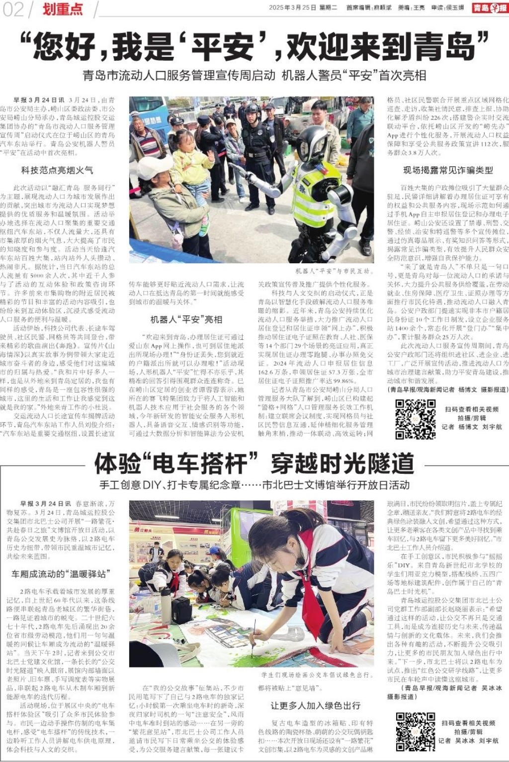 科技与人文交织的启动仪式,正是青岛以智慧化手段破解流动人口服务难题的缩影。近年来,青岛公安持续优化流动人口服务举措,大力推广流动人口居住登记和居住证申领“网上办”,积极推动居住证电子证照在教育、人社、医保等14个部门29个场景的亮证应用,真正实现居住证办理零跑腿、办事办照免交证。2024年流动人口申报居住信息162.6万条,申领居住证57.3万张,全市居住证电子证照推广率达99.86%。
