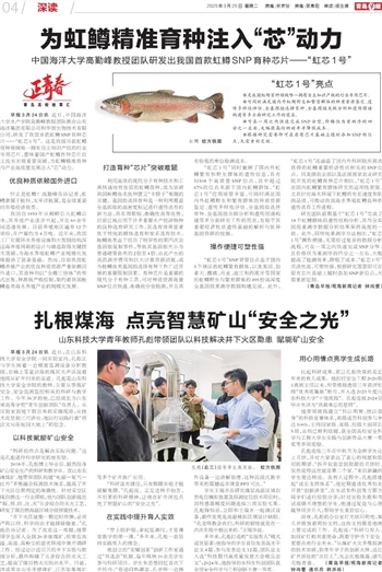 早报3月24日讯 近日,中国海洋大学水产学院高勤峰教授团队联合山东海洋集团有限公司和华智生物技术有限公司,研发了我国首款虹鳟SNP育种芯片——“虹芯1号”。这是我国目前虹鳟育种领域唯一拥有自主知识产权的行业专用芯片,意味着国产虹鳟育种芯片自主攻关实现重要突破,为虹鳟精准育种与产业高质量发展注入“芯”动力。