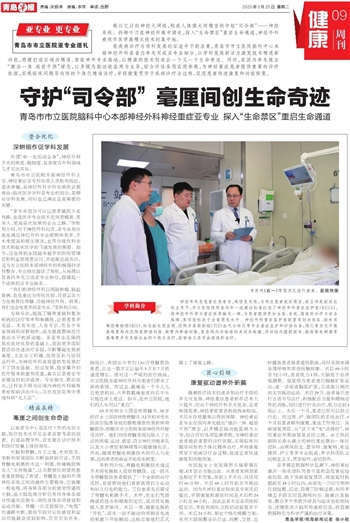 在疾病诊疗与学科发展的征途中不断求索,青岛市市立医院脑科中心本部神经外科在省内率先完成亚专业细分,以学科发展新活力激发技术精进新动能,稳健打造区域内精准、智能神外专业高地,以精湛的技术创造出一个又一个生命奇迹。同时,在国内率先提出“康治一体 超前干预”理念,以多模态脑功能监测为主导,综合评估各项监测参数,为神经重症患者提供重要的诊疗依据,实现临床问题导向性的个体化精准治疗,并将康复贯穿于疾病诊疗全过程,促进患者快速康复和功能恢复。