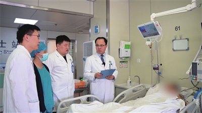 李胜利(右一)带领团队进行查房。医院供图