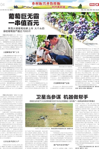 作为农业大市,莱西市近年来持续打造镇域特色产业,葡萄产业发展迅速,全市葡萄种植面积超4万亩,年产量8万多吨,2024年产值达18.2亿元,带动果农人均年增收3万余元。莱西目前主要种植巨峰、藤稔、克瑞森、夏黑、阳光玫瑰等多个葡萄品种,已成为华北及环渤海湾主要葡萄种植区之一,是我国鲜食葡萄和酿酒葡萄生产的优势产区。下一步,莱西将积极推广发展优质高效葡萄种植,着力搞好产前、产中、产后服务,打造集育苗、种植、生产、酿造和旅游于一体的全产业链体系,让农民获得更多产业增值收益。