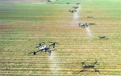 植保无人机助力春管喷药。青报全媒体/观海新闻记者 赵健鹏 摄