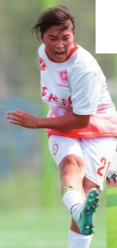 青岛实验高中女足队员在比赛中。