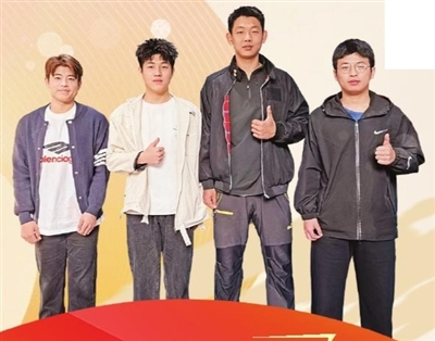 救人的四名大学生王士勇、郭志兴、郭明川、孙少辉(从左往右)。
