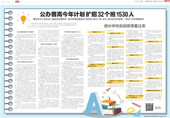 面向市南区、市北区、李沧区、崂山区和高新区招收自主招生班3个班,共150人。其中,1个班50人,笔试科目为物理、化学;2个班100人,笔试科目为物理、历史。分别单独编班。