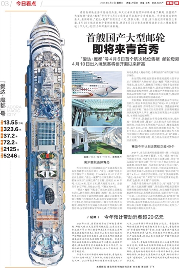 作为北方距日韩最近的邮轮母港,青岛依托“公路+铁路+航空”立体网络,辐射沿黄流域超4亿人口。2024年青岛邮轮游客吞吐量突破7万人次,2025年预计带动消费超20亿元。青岛国际邮轮港区服务管理局相关负责人表示,青岛将借力“齐鲁国际邮轮季”等IP,打造“沿着黄河遇见海登上邮轮观世界”品牌,加快做大市场规模,推动全产业链发展,联动山东全域建设“中国邮轮旅游协同发展区”。