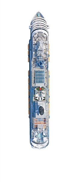 作为中国在全力构建邮轮全产业链进程中具有里程碑意义的标杆项目,“爱达・魔都”号是中国首艘国产大型邮轮,于2024年1月1日正式开启商业首航。“爱达・魔都”号以摩登都市为灵感,船体涂装以“丝绸之路”为主题,总吨位13.55万吨,长323.6米、宽37.2米,最大高度72.2米。全船共有20层甲板,房舱2125间,可载客5246位。