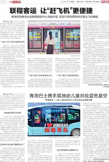 航空运输与铁路运输相互协作为城市乃至区域发展带来了蓬勃的活力。青岛机场聚焦空铁联运无缝中转,充分发挥“双高”速度优势,进一步拓展航空运输辐射圈。2024年,新启用日照、临沂高铁城市航站楼,青潍空铁联运旅客“零负担”出行项目作为国家六部委联合评选、省内唯一入选的旅客联程运输服务品牌,为民航与高铁合作发展创立了“青岛样板”;2025年春运期间,启用胶州北站、青岛北站空铁联运城市航站楼,持续打造到车站即到机场的“一站式”综合服务模式,让山东半岛其他城市居民实现“坐着高铁赶飞机”。