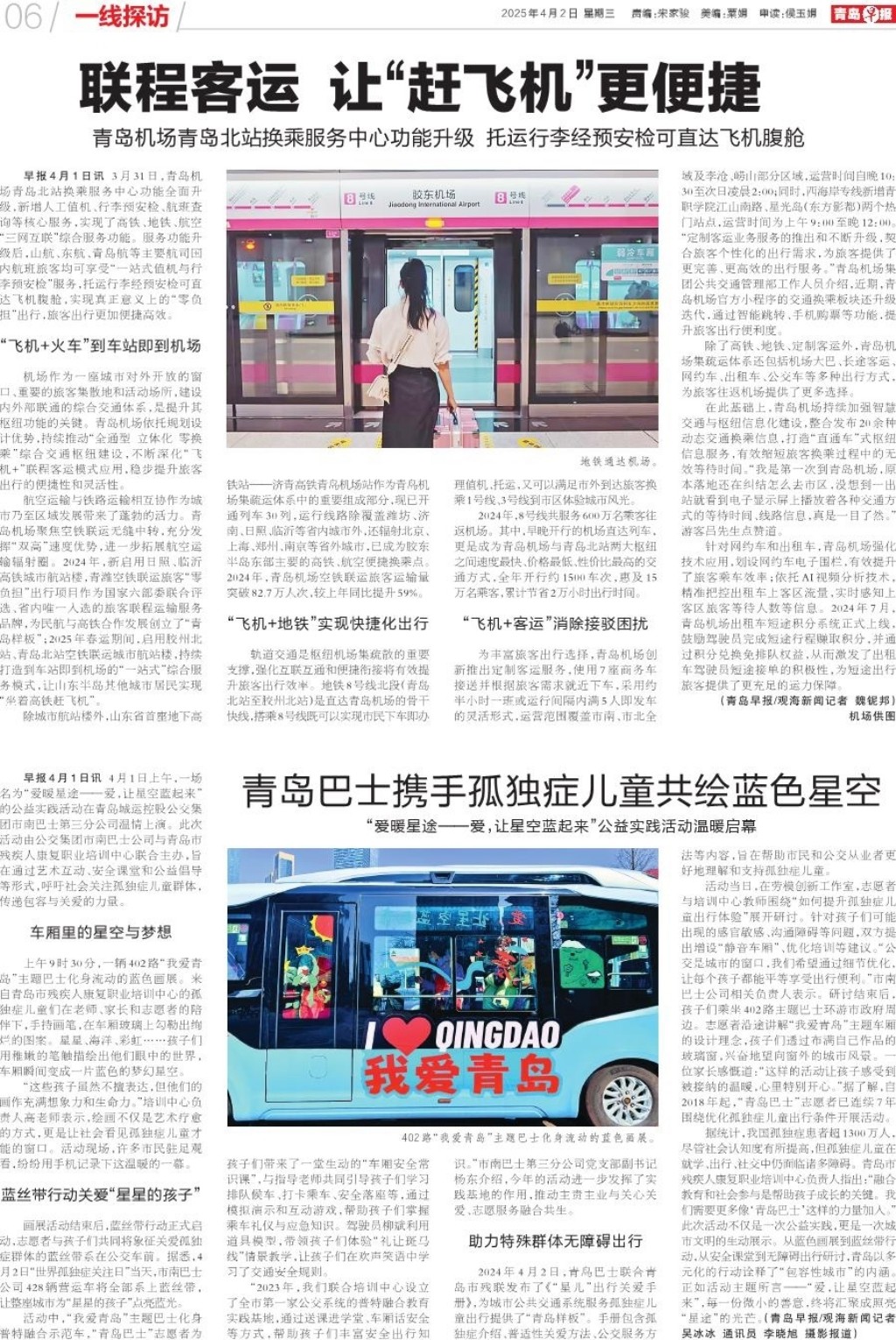 为丰富旅客出行选择,青岛机场创新推出定制客运服务,使用7座商务车接送并根据旅客需求就近下车,采用约半小时一班或运行间隔内满5人即发车的灵活形式,运营范围覆盖市南、市北全域及李沧、崂山部分区域,运营时间自晚10:30至次日凌晨2:00;同时,西海岸专线新增青职学院江山南路、星光岛(东方影都)两个热门站点,运营时间为上午9:00至晚12:00。“定制客运业务服务的推出和不断升级,契合旅客个性化的出行需求,为旅客提供了更完善、更高效的出行服务。”青岛机场集团公共交通管理部工作人员介绍,近期,青岛机场官方小程序的交通换乘板块还升级迭代,通过智能跳转、手机购票等功能,提升旅客出行便利度。