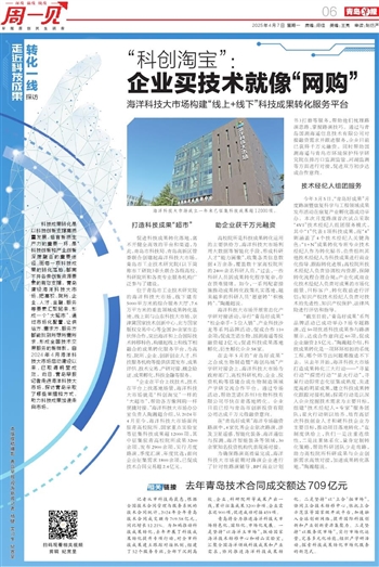 科技成果转化是以科技创新支撑高质量发展、培育新质生产力的重要一环,是科技创新和产业创新深度融合的重要途径,而每一项科技成果的转化落地,都离不开各类创新资源要素的有效支撑。青岛建设海洋科技大市场,把高校、院所、企业、人才、金融、服务等要素汇聚起来,形成一个“大超市”,通过市场化配置,让供给方、需求方、服务方都能找到所想所需所求,形成全国技术交易服务的新样板。自2024年4月海洋科技大市场启动建设以来,已取得明显成效。近日,青岛早报记者走进海洋科技大市场,探访青岛采取了哪些举措和方式,助力科技成果加速走向市场。