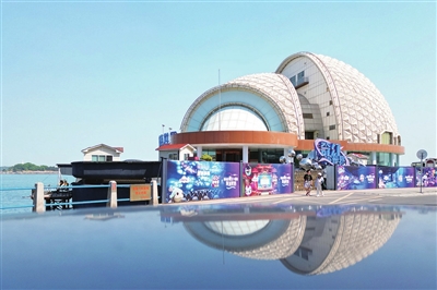 海上皇宫形如一个白色贝壳,因其独特的地理位置以及别致的造型一直备受关注。海上皇宫始建于1994年,1996年建成并开始营业,建筑面积11000平方米。海上皇宫发展历程多以酒店餐饮业态为主,后皆因经营不善,停业“沉睡”10多年。2018年重新清理翻新,2019年曾运营“故宫青岛文创馆”。2022年8月,金东数创和青岛海明城市发展有限公司接手海上皇宫项目,经历了负一层海水倒灌清理、老化设备修复、场景再造后,终于盘活了这个一度被废弃的资产。2023年10月设计方案正式出炉,2024年7月,海上皇宫摇身一变“U·SEA奇幻海世界”,成为全国首个“海洋元宇宙”乐园。从外观看,整修后的“海上皇宫”没有太大变化,但内部已经另有乾坤。海上皇宫共5层,奇幻海世界占其中的一、二两层,一层约2500平方米,二层约2000平方米。在这里,参观者可以通过冰火之争、古海争霸赛等了解海洋的诞生和生命的进化;步入深海,观看动态生物场景,与深海生物互动;还可以戴上3D眼镜,坐上动感座椅,在270°LED沉浸式碗幕中踏上海洋历险之旅。