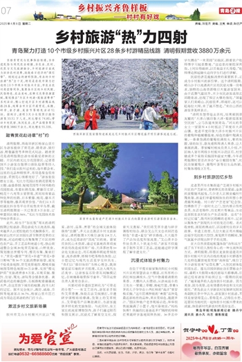 当踏青赏花与农事体验相遇,当非遗民俗与现代农业碰撞,当农业、农村、农民与文化旅游融合,乡村旅游日益成为拉动农村消费,助跑春日经济的“强引擎”。刚刚过去的清明假期,青岛的乡村旅游“热”力十足,特别是在我市聚力打造的10个市级乡村振兴片区,市农业农村局因势利导,集聚各片区的乡村风貌、民俗特色、农品美味、农耕文化等资源禀赋,策划推出“片区乡村游·提振消费季”系列活动,精心打造片区乡村游精品线路28条,统筹全市片区开展赏花、采摘、研学、亲子游、美食节等特色活动51场。据统计,清明3天小长假预计接待游客33.51万人次,同比增长74.8%;带动乡村民宿、休闲农业、农产品销售等实现营收3880万余元,同比增长55.33%。