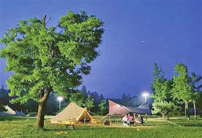 莱西市水集街道产芝湖乡村振兴片区内的露营旅游吸引游客纷至沓来。