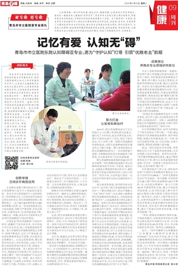 在老龄化进程不断加快的当下,阿尔茨海默病已成为不少家庭的沉重负担。青岛市市立医院脑科中心东院神经内二科科研副主任、主任医师徐伟在接受记者采访时表示,阿尔茨海默病的核心病理机制之一,是大脑内β淀粉样蛋白(Aβ)异常聚集与沉积,这一变化致使患者记忆力持续减退、判断力严重受损,甚至出现失语、失聪等症状,生活质量直线下降。为解决这一难题,青岛市市立医院率先开设“阿尔茨海默病”日间治疗病房。