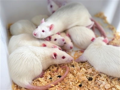 青岛大任富城畜牧有限公司养殖的白鼠。青报全媒体/观海新闻记者 高静文 摄