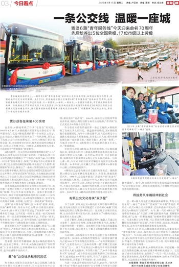 1955年4月15日,6路线被共青团青岛市委命名为“青年服务线”,自此,每年的4月15日便成为了6路线的“线庆日”。70年间,6路人始终坚持以导师带徒、义务献血、爱心陪伴等不同形式开展纪念活动,累计无偿献血超20万毫升,志愿服务时长突破10万小时,将车厢服务延伸至城市的每个角落。
