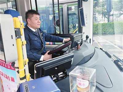 6路线驾驶员周群松传承公交老绝活“一碗水”。
