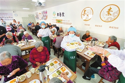 老人们在“日善堂”公益餐厅用餐。青岛早报/观海新闻首席记者 孙启孟 摄(资料照片)
