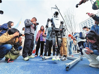 如果用AI技术生成一个“人机共跑”画面,机器人仿佛快赶上人类的速度,但实际上机器人的奔跑速度与人类还有较大差距。目前各参赛队正在通过模拟仿真和路面实测,进一步完善机器人性能,一些参赛机器人最高奔跑时速可达12公里。考虑到路跑对躯体冲击较大,有的机器人增加了缓冲装置,有的还穿上特制“跑鞋”。