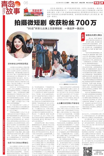 作为土生土长的青岛姑娘,宋菲儿对家乡青岛一直有着别样的情愫,除了拍摄微短剧外,她也曾参与过在青岛取景拍摄的《闪光少女》《冰糖炖雪梨》《世界上最爱我的人》等影视作品。“青岛有着得天独厚的自然风景,红瓦绿树、碧海蓝天,就像是天然的摄影棚,吸引了越来越多的剧组在这里取景拍摄,这也给我们演员从业者提供了更多机会。”宋菲儿说道,在青岛,她认识了很多行业内演技过硬的前辈们,他们一直在默默为岛城影视行业不断浇筑,也为像她一样的年轻演员们树立了榜样。
