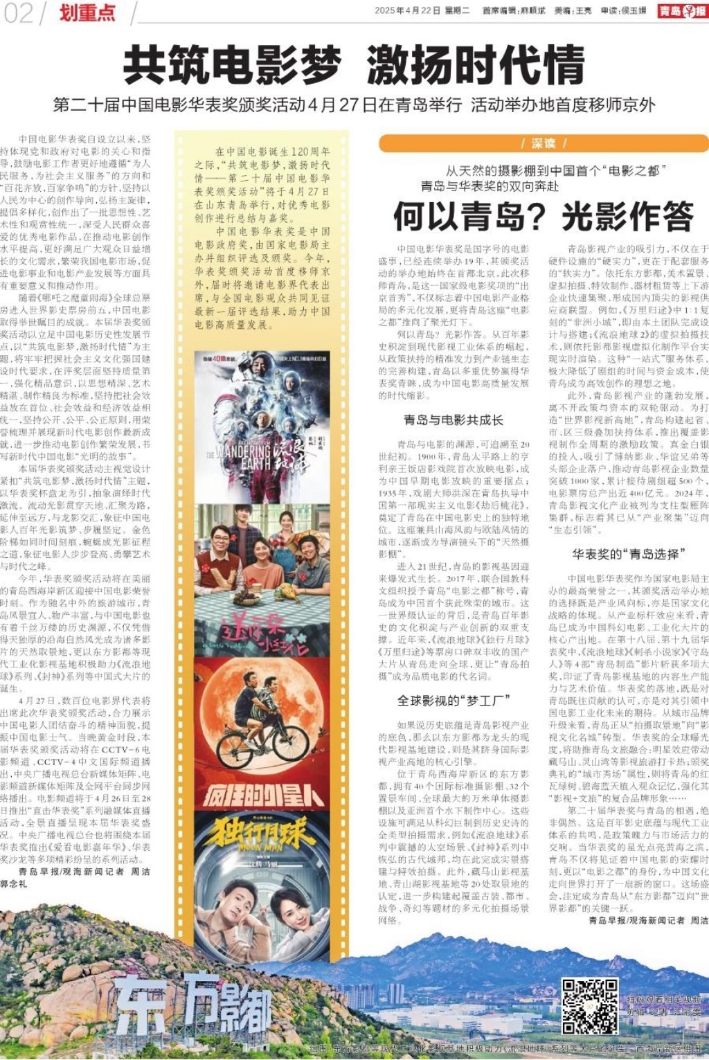 中国电影华表奖作为国家电影局主办的最高荣誉之一,其颁奖活动举办地的选择既是产业风向标,亦是国家文化战略的体现。从产业标杆效应来看,青岛已成为中国科幻电影、工业化大片的核心产出地。在第十八届、第十九届华表奖中,《流浪地球》《刺杀小说家》《守岛人》等4部“青岛制造”影片斩获多项大奖,印证了青岛影视基地的内容生产能力与艺术价值。华表奖的落地,既是对青岛既往贡献的认可,亦是对其引领中国电影工业化未来的期待。从城市品牌升级来看,青岛正从“拍摄取景地”向“影视文化名城”转型。华表奖的全球曝光度,将助推青岛文旅融合:明星效应带动藏马山、灵山湾等影视旅游打卡热;颁奖典礼的“城市秀场”属性,则将青岛的红瓦绿树、碧海蓝天植入观众记忆,强化其“影视+文旅”的复合品牌形象……