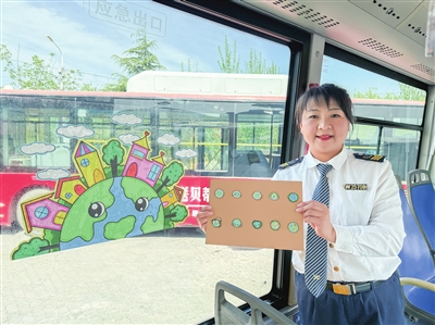39路驾驶员孙娜精心布置世界地球日主题车厢。