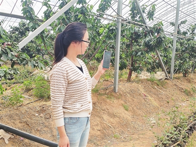 樱之语农业有限公司副总经理杨诗涵展示物联网控制终端APP。