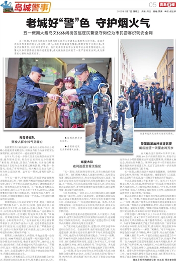 “五一期间,我们按照安保方案,负责大鲍岛的夜间巡逻工作。我们围绕大鲍岛人流量大的特点,优化警力部署,调控巡逻时间节点,努力实现全程无盲区巡逻。”青岛市公安局市北分局巡警大队四级高级警长孙运利说道,五一期间,大队共出动巡防警力百余人次,针对治安重点复杂区域多、季节性警情案件高发的情况,强化显性用警,着力提升巡防质效。