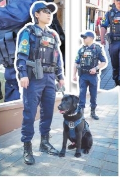 ▲青鸾特巡队队员带着警犬执勤。