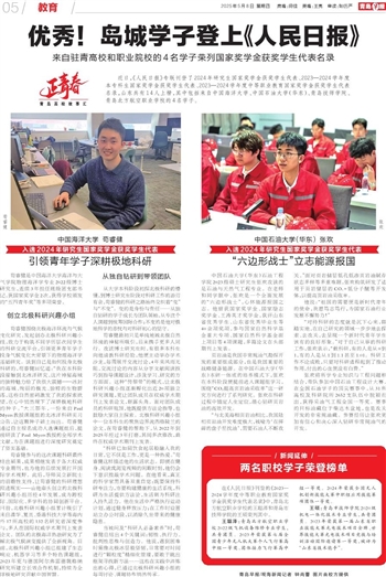 近日,《人民日报》专版刊登了2024年研究生国家奖学金获奖学生代表、2023—2024学年度本专科生国家奖学金获奖学生代表、2023—2024学年度中等职业教育国家奖学金获奖学生代表名录,山东共有14人上榜,其中包括来自中国海洋大学、中国石油大学(华东)、青岛技师学院、青岛北方航空职业学校的4名学子。