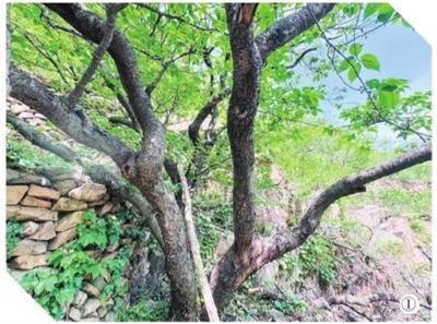 走进崂山区北宅街道三树新村的大山之中,村民张宜虎停下脚步,向远处指了指,那是山中一棵百年老樱桃树。相比一般的樱桃树,它的枝干粗壮,树皮上覆盖着一缕缕青苔,在它顶部几处较细的枝子上,已经挂上了一簇簇红得发紫的樱桃。
