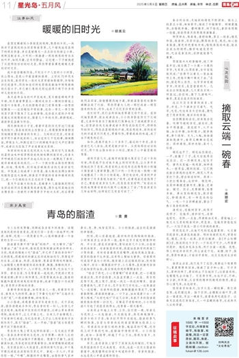 春天在布谷鸟的叫声里起床,夏天躺在蝉鸣声里午睡,秋天拿着箩筐从一棵树走向另一棵树扫着地上的落叶当柴草,冬天的傍晚守在门前等待第一场雪轻轻飘落……这些稀松平常的事,这些一季又一季于期待里不紧不慢来了又去的事物,这些在从前的少年眼里漫长而缓慢的时光,隔着几十年的光阴,静静想起,满腔皆是温暖与怀念。