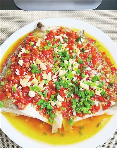 新鲜的鲢鱼头保留一部分鱼身,清理好后等待一场味觉的蜕变。剁椒,是这道菜的灵魂画笔。它们热烈如火,在厨房里燃烧着无尽的热情。剁椒细细剁碎,每一刀都像是在释放激情,那辣味似海浪般一波波涌来。将剁椒均匀铺在鱼头上,鲜红与雪白的对比,热烈而壮观。姜蒜末如味觉的守护者,围绕在鱼头周围,悄悄释放着辛香气息,像是在为这场辣味之旅保驾护航。蒸锅上灶,水汽升腾,鱼头在热气的簇拥下,仿佛置身于青岛的晨雾中。时间在这一刻变得缓慢而精致,剁椒的辣、鱼头的鲜、姜蒜的香,相互交融,形成了独特的味觉魔法。随着蒸汽的升腾,鱼头在高温的呵护下吸饱了剁椒的精华。剁椒的辣味深入鱼肉,却恰到好处,不会过于霸道,与鱼头的鲜美达成一种奇妙的平衡。出锅的那一刻,热油浇淋而下,那一声“滋啦”仿佛是开启美味的咒语,瞬间激发出剁椒的香辣气息。