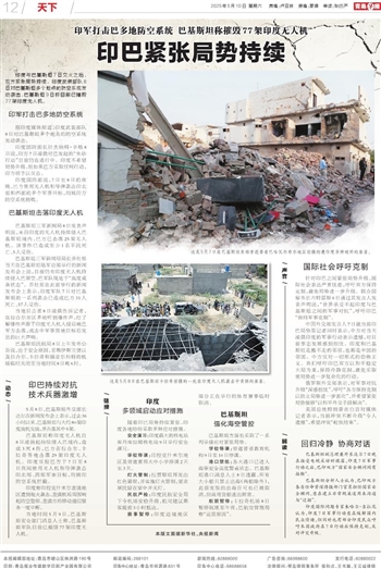 印度与巴基斯坦7日交火之后,双方紧张局势持续。印度武装部队8日对巴基斯坦多个地点的防空系统发动袭击,巴基斯坦9日称目前已摧毁77架印度无人机。