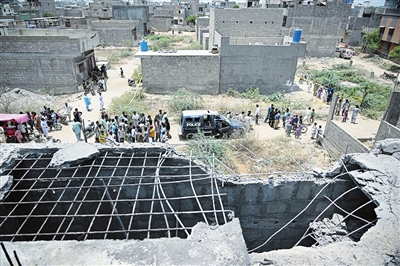 这是5月8日在巴基斯坦卡拉奇拍摄的一处在印度无人机袭击中受损的房屋。