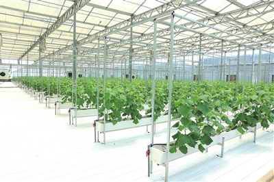 走进生产基地,现代化的智能大棚整齐排列,宛如一座充满科技感的“蔬菜工厂”。在65个冬暖式大棚中,智能监测系统如同无处不在的“智慧管家”。在控制室的大屏幕上,各个大棚的画面清晰分割显示。只需轻点“草莓西红柿种植模板”,系统便能自动调整通风口开合、启动精准滴灌系统等。