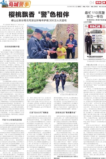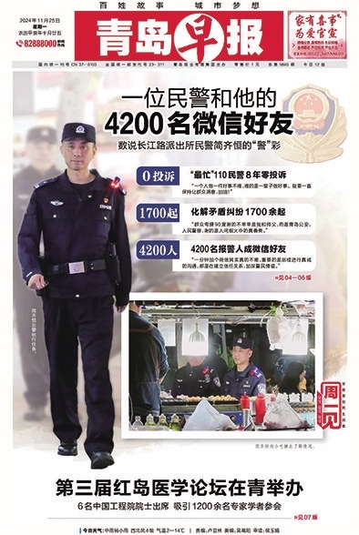 2024年11月25日,青岛早报以《一位民警和他的4200名微信好友》为题,通过约1万字的文稿、图片与视频,独家报道了“最忙”110民警简齐恒的“警”彩故事。
