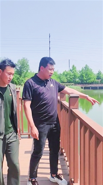 胡伟鑫(右)和盛祥展向记者讲述湖畔救人过程。