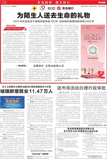 2024年,青岛造血干细胞捐献突破200例,遗体器官角膜捐献突破5000例。这些捐献者们以无私大爱,为素不相识的生命送去重生的希望,为医学生提供最真实生动的教材。每一个捐献数字的背后,都是生命的接力与传承,诠释着“人间值得”的终极答案。