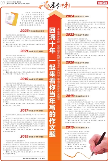 一转眼,2025年高考又要到了,岛城又一批学子将踏上人生的新征途。还记得你那年的高考作文题目吗?你又对哪一年的高考作文题目印象最深?青岛早报记者带你一起来回顾过去10年的山东高考作文题目。