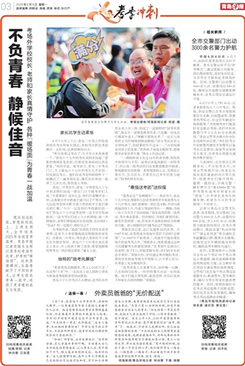 笔尖划过纸张,梦想跃然纸上。上周末两天,全市迎来2025年全国夏季高考。青岛早报记者用镜头全程记录多处考场外赴考、护考的“暖场面”。这些真情瞬间,为高考赋予了不同的含义,让考生在此青春一战中,收获了更多维的成长与收获。