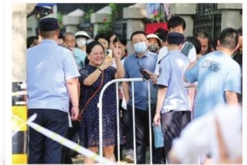 家长翘首以盼等待孩子走出考场。