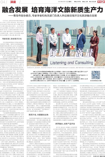 “现在,人们的工作和生活节奏快、压力较大,大家更倾向于度假游,但青岛还没有一站式的海洋旅游度假场所。”陈美红建议,整合优化现有资源,建设一处集度假、康养、海洋美食、海洋文化宣传为一体的综合性海洋度假场所,既可以让游客深度体验青岛海洋文化,也可以增加旅游淡季客流量,让淡季不淡、旺季更旺。
