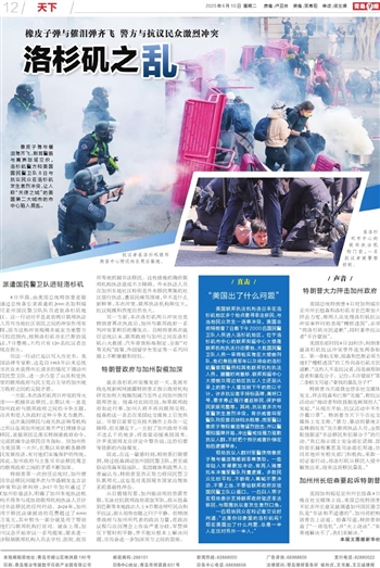 从目前情况看,加州能动用的资源有限,无法对抗联邦政府派驻军队,故从纽森到巴斯等本地政治人士8日都在呼吁民众和平抗议,街头局势也随之归于平静。但特朗普政府与加州所代表的政治力量,在政治议程与治国理念上存在严重分歧,军警弹压下暂时的平静,并不能从根本上解决问题,反而会进一步加深双方之间的裂痕。