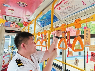 6路驾驶员周群松打造“金榜题名”中考主题车厢。