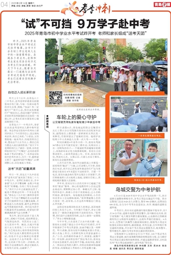 昨天,2025年青岛市初中学业水平考试正式拉开帷幕,全市9万余名初三学生迎来人生中的一场重要考验。岛城各个考点外,老师和考生家长用各自的方式为考生们加油助威。昨天下午6点,随着当天最后一门道德与法治科目考试交卷铃声响起,考生们迈着自信的脚步走出考场。