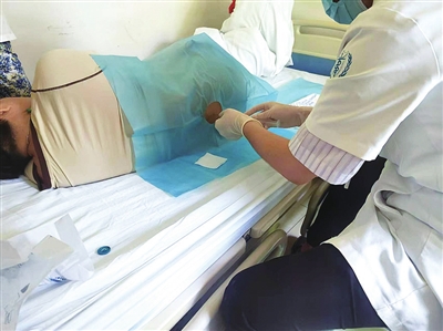 青岛大学附属医院患者接受托夫生注射液山东首针治疗。院方供图