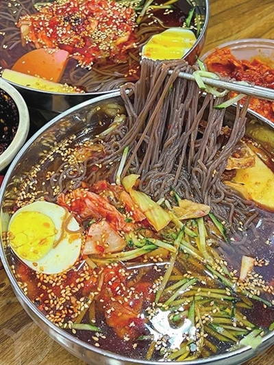 夏日炎炎,又热又燥,是时候吃碗清爽的冷面凉快一下了。面条筋道滑溜,冷面汤冰冰凉凉,鲜爽酸甜。连同汤汁吸溜一口,简直太过瘾!凉面和冷面,听起来是亲戚,但其实根本不搭界。延吉、朝鲜和韩国的冷面口味酸甜,接近饮料的冰点,而爽滑的面并非这里的主角,称霸其中的,是辣白菜、牛肉片,甚至是煮鸡蛋和水果片。